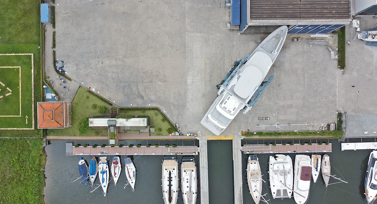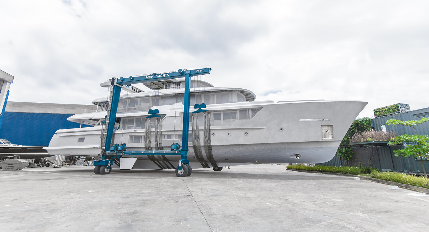 Project Seaview 40 metres, another successful partnership with Dutch Designer VRIPACK Group, has emerged into sunlight for the first time. This impressive new MCP Yachts newbuild has been moved from the construction shed to the finishing and final painting shed. Following the MCP Yachts lineup tradition, The SEAVIEW 40M is an all aluminum vessel, with a layout focused on maximizing living space and owner privacy. Quite unique for a 40m is the dedicated crew circulation area, allowing for extended privacy.